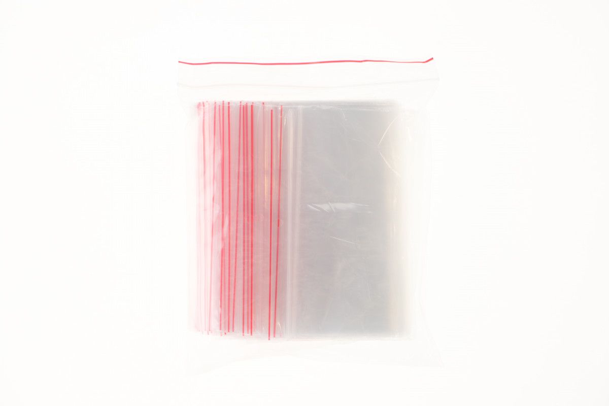 wieszakach. Fałda oznaczona jest czerwoną linią, która pomaga w otwieraniu woreczka.