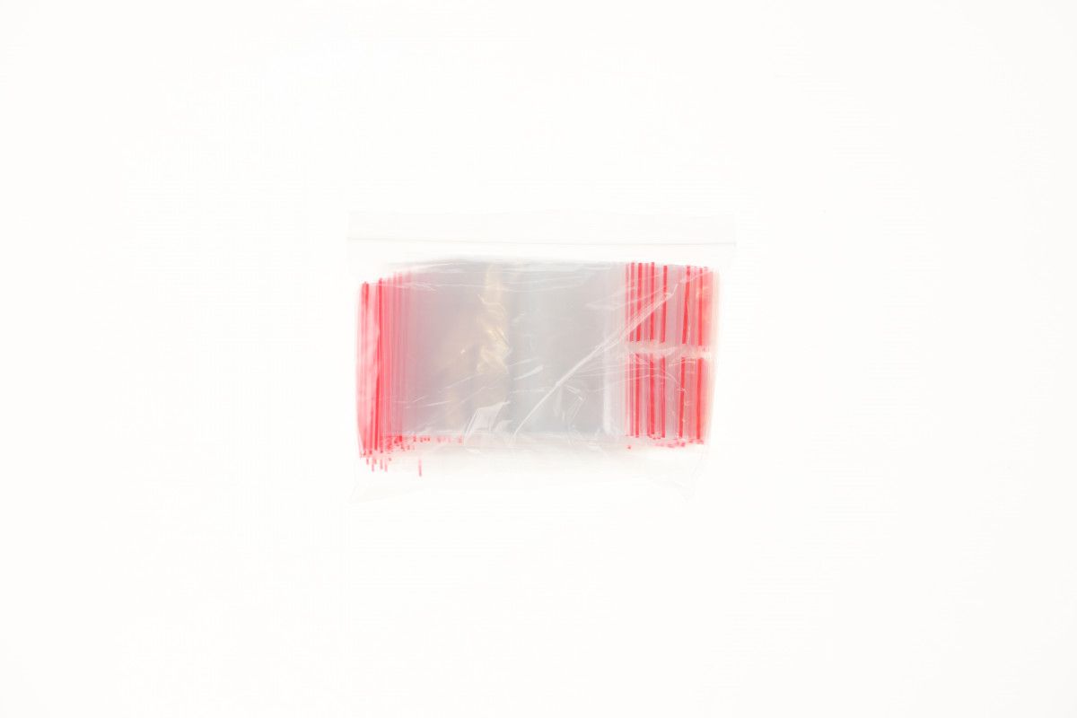 wieszakach. Fałda oznaczona jest czerwoną linią, która pomaga w otwieraniu woreczka.