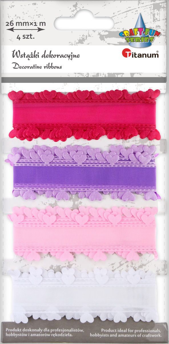 Wstążka Craft-Fun Series falbanka z sercami 4 kolory 26x1 [mm x m] mix Titanum (BR231745)