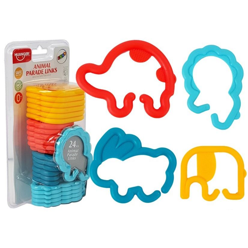 W zestawie 24 części, w tym 4 różne rodzaje kształtów zwierzątek i inne struktury. Dodatkowo twój maluch może łączyć zwierzątka ze sobą, tworzyć własne wzory i kształty. Rozwinie to jego kreatywność, funkcję ręka-oko oraz zmysł wzroku i dotyku zacznie pracować. Uśmiech na twarzy dziecka i korzyści płynące z tej prostej, ale i kształcącej zabawki sprawią,że będziesz się cieszyć z postępów swojego dziecka.
