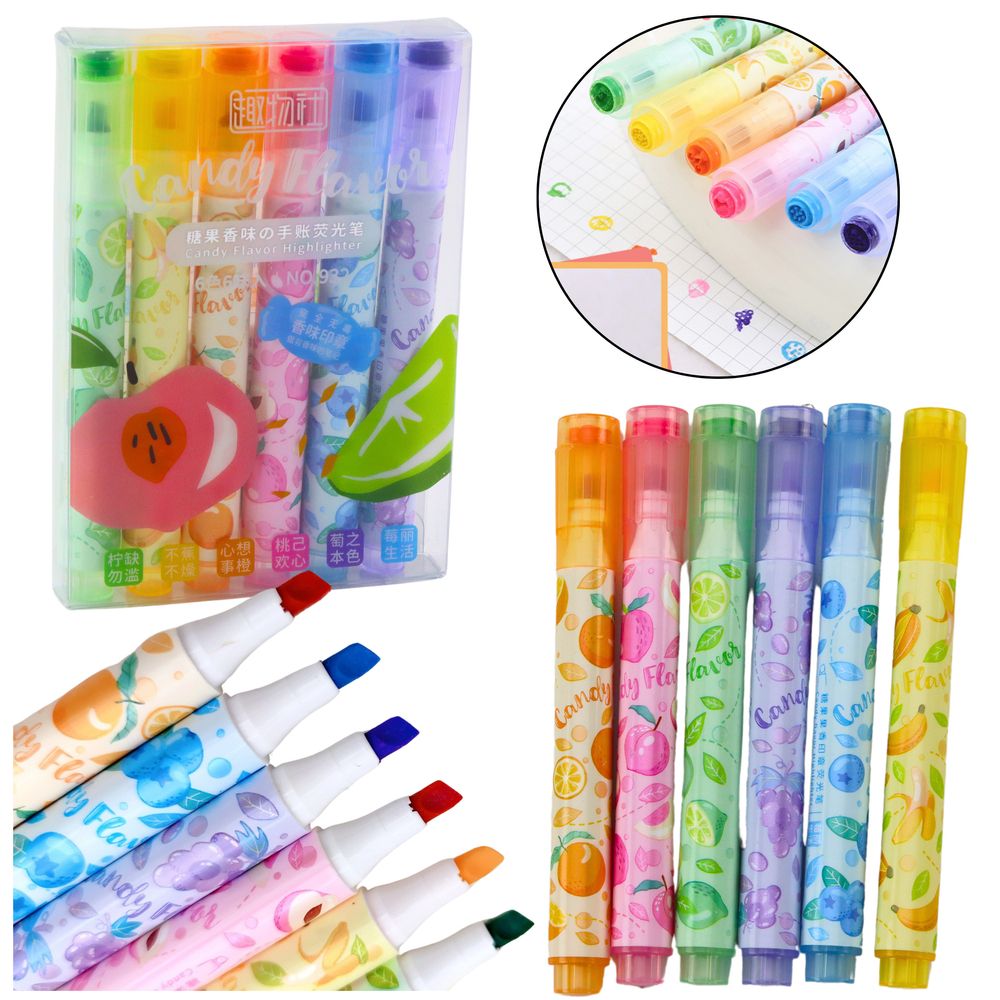 Kolorowe Zakreślacze Owocowe z Pieczątką – Zestaw 6 Sztuk ⭐