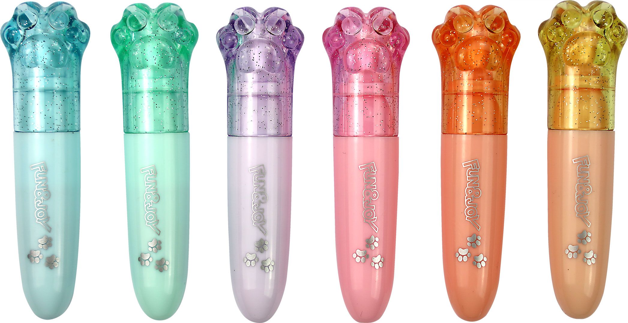 Dostępne: 4087 Sztuk Lub zamów telefoniczne: 690 216 578Zestaw 6 zakreślaczy w rozmiarze mini. Okrągła obudowa zakończona słodką przeźroczystą łapką w kolorze tuszu. Grubość linii pisania 1-4 mm. Pakowane w praktyczny woreczek na suwak.
