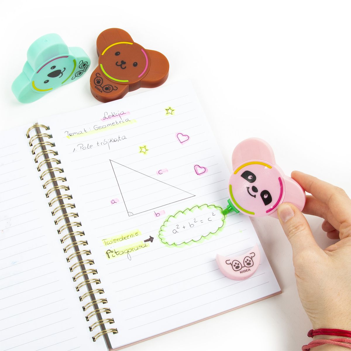 Dostępne: 16 Sztuk Lub zamów telefoniczne: 690 216 578Zakreślacze 3w1 Kidea. W jednym zakreślaczu ze zwierzakiem - misiem, koalą lub leniwcem skrywają się aż trzy kolory neonowych końcówek: żółty, zielony i różowy. Z pewnością docenią je wielbiciele pomysłowych i minimalistycznych rozwiązań, którzy nie lubią nosić zbyt dużo w piórniku, a którzy wziąż chcą mieć najpotrzebniejsze przybory pod ręką. Kolorowe zakreślacze sprawdzą się podczas sporządzania notatek, zaznaczania ważnych zagadnień w trakcie nauki czy podkreślania tematów lekcji.