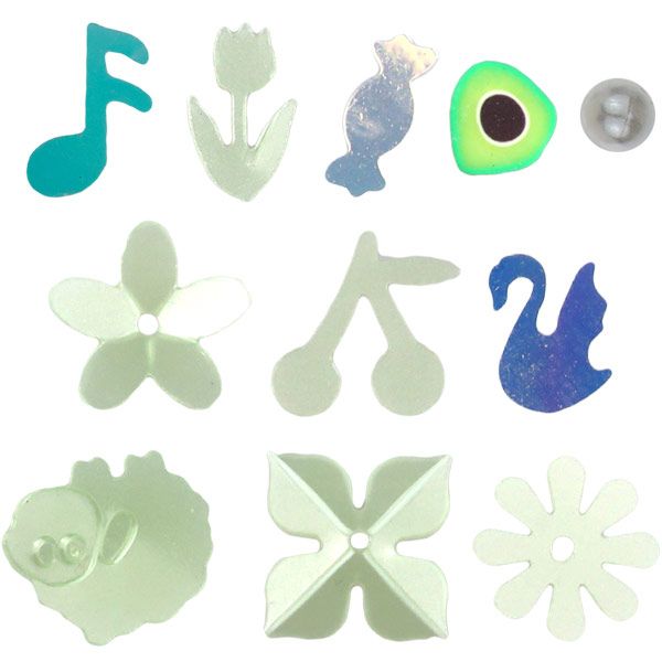 Dostępne: 1324 Sztuk Lub zamów telefoniczne: 690 216 578Zestaw: perełki - średnica 4 mm, cekiny - kwiatek płaski średnica 10 mm, kwiatki wypukłe 2 wzory 10 mm, konfetti czereśnie 10x9 mm, nuta 6x9 mm, łabędź 6x8 mm, cukierek 8x3 mm, owca 12x11 mm, tulipan 5x9 mm, avocado dwustronne 5x6/6x8 mm, tonacja zielona. 14 g.