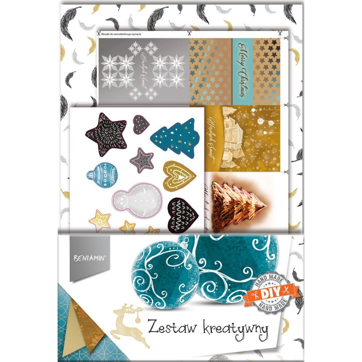 ZESTAW świąteczny zawiera: 4 x papier ozdobny karton, format A4 4 x papier ozdobny, format A4 1 x papier ozdobny uszlachetniony, format A4 8 obrazków 52 naklejki 1 x papier samoprzylepny ZŁOTY, format A4 1 x papier samoprzylepny SREBRNY, format A4 1 x KALKA kreślarska, format A4 1 x SZABLON, format A5
