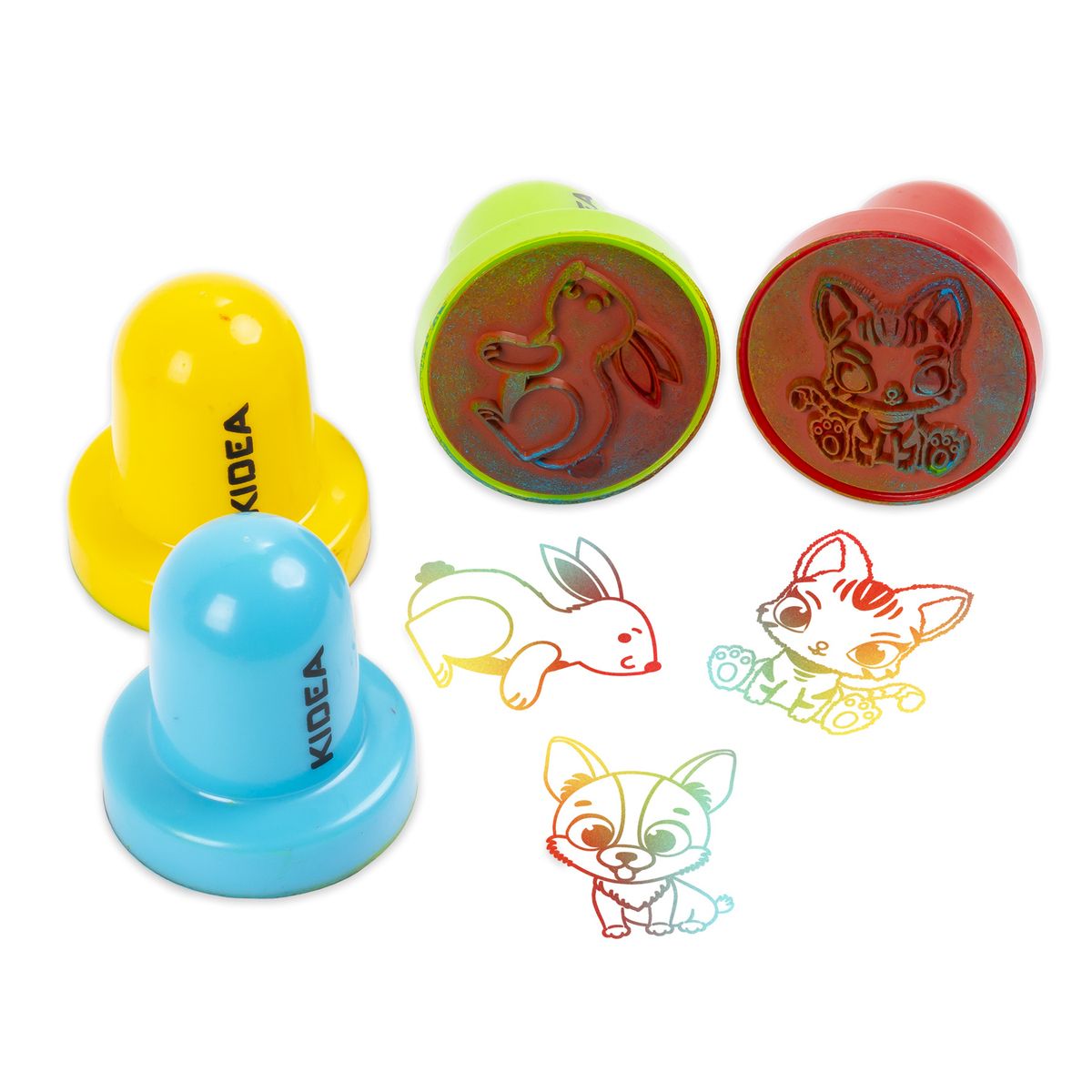 Dostępne: 3 Sztuk Lub zamów telefoniczne: 690 216 578Stempelki dla dzieci z uroczymi zwierzakami urozmaicą każdą pracę plastyczną. Zestaw zawiera 4 kolorowe stempelki oraz czterokolorową poduszkę z tuszem. Maczane w tuszu stempelki tworzą na papierze wielokolorowe kształty zwierzątek. Zestaw stempli ze zwierzakami KIDEA jest idealny dla dzieci, które rozpoczynają swoją przygodę z plastyką.