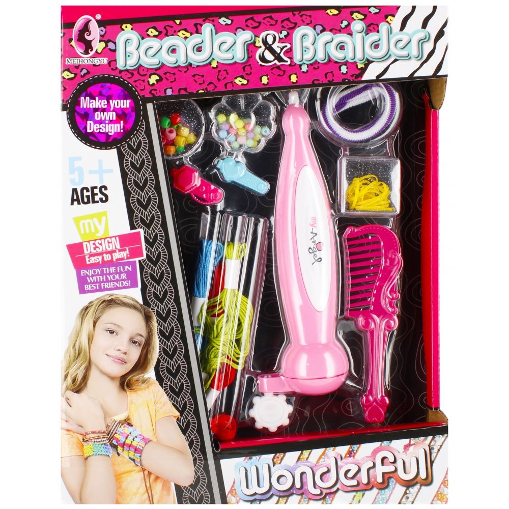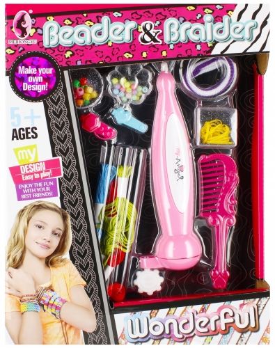 Dostępne: 4 Sztuk Lub zamów telefoniczne: 690 216 578Zalety produktu: rozwija kreatywność dziecka, pobudza wyobraźnię. Zestaw piękności MEGA CREATIVE doskonale nadający się do stylizacji włosów i tworzenia fantazyjnych fryzur, spraw radość dziecku. Aby poprawić umiejętności praktyczne dla ułatwienia w zestawie dołączona jest poza koralikami i nićmi kolorowymi które możesz wpleść we włosy, maszynka do zaplatania ozdób. Zawartość zestawu: maszynka do zaplatania włosów, koraliki do nawlekania, grzebień, gumki do włosów. Zestaw wykonany z plastiku. Wymiary/waga/baterie: wymiary produktu szer. x wys. . cm :-maszynka 7x24, wymiary opakowania dł. x wys. x gł. cm : 26x34x6, waga produktu bez opakowania kg : 0,18 kg, waga produktu w opakowaniu kg: 0,31 kg, nie wymaga zasilania bateriami. Produkt przeznaczony dla dzieci w wieku 5 . W kartonie po 18/36 szt.
