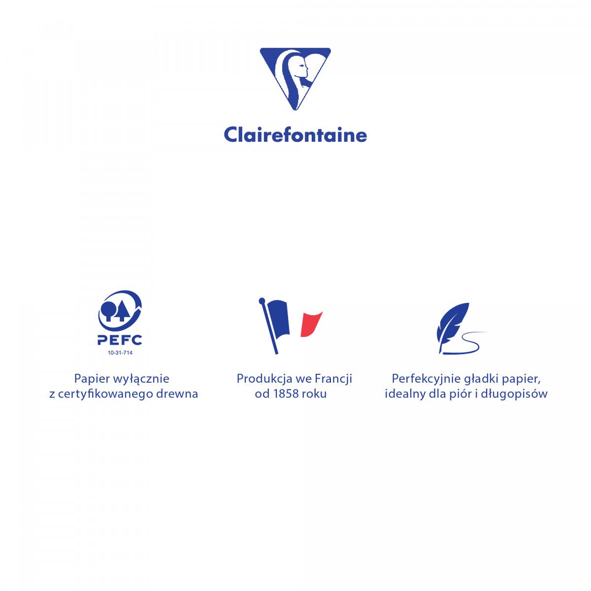 Dostępne: 140 Sztuk Lub zamów telefoniczne: 690 216 578Zeszyt Clairefontaine w kratkę w formacie A5 z okładką w 6 intensywnych kolorach (niebieski, zielony, czerwony, błękitny, różowy, żółty). To doskonałe połączenie wyjątkowej jakości i funkcjonalności. Zawiera 16 kartek o idealnie satynowym wykończeniu, które nie tylko zapewniają doskonałą gładkość pisania, ale także eliminują prześwitywanie i przebijanie atramentu. Charakterystyczny papier Clairefontaine o gramaturze 90g/m2 gwarantuje doskonałe efekty pisania zarówno ołówkiem, długopisem jak i piórem wiecznym i atramentem. Kolor nadruku został precyzyjnie dobrany, aby zapewnić optymalny kontrast pomiędzy liniaturą a papierem, minimalizując obciążenie wzroku. Odporność na wielokrotne wymazywanie zapewnia swobodę korygowania notatek i zapisków oraz sprawia, że pozostają one czytelne i estetyczne. Zeszyt posiada certyfikat PEFC, potwierdzający zrównoważone pozyskiwanie drewna z certyfikowanych lasów UE, co stanowi wyraz troski marki o środowisko naturalne. Ponadto włókna używane do produkcji pochodzą z odnawialnych źródeł, a zastosowane kleje są neutralne, co sprawia, że papier nadaje się w 100% do recyklingu.Laminowana okładka nie tylko chroni zeszyt, ale także dodaje mu elegancji. Wyprodukowany we Francji, z zachowaniem najwyższych standardów produkcji. Firma Clairefontaine, założona w 1858 roku, jest jedynym producentem artykułów papierniczych w Europie Zachodniej, który nadal zachowuje tradycje wytwarzania własnego papieru w historycznej fabryce, zlokalizowanej w Etival-Clairefontaine. Zeszyty sprzedawane w opakowaniu zbiorczym 10 szt. w mixie kolorów.