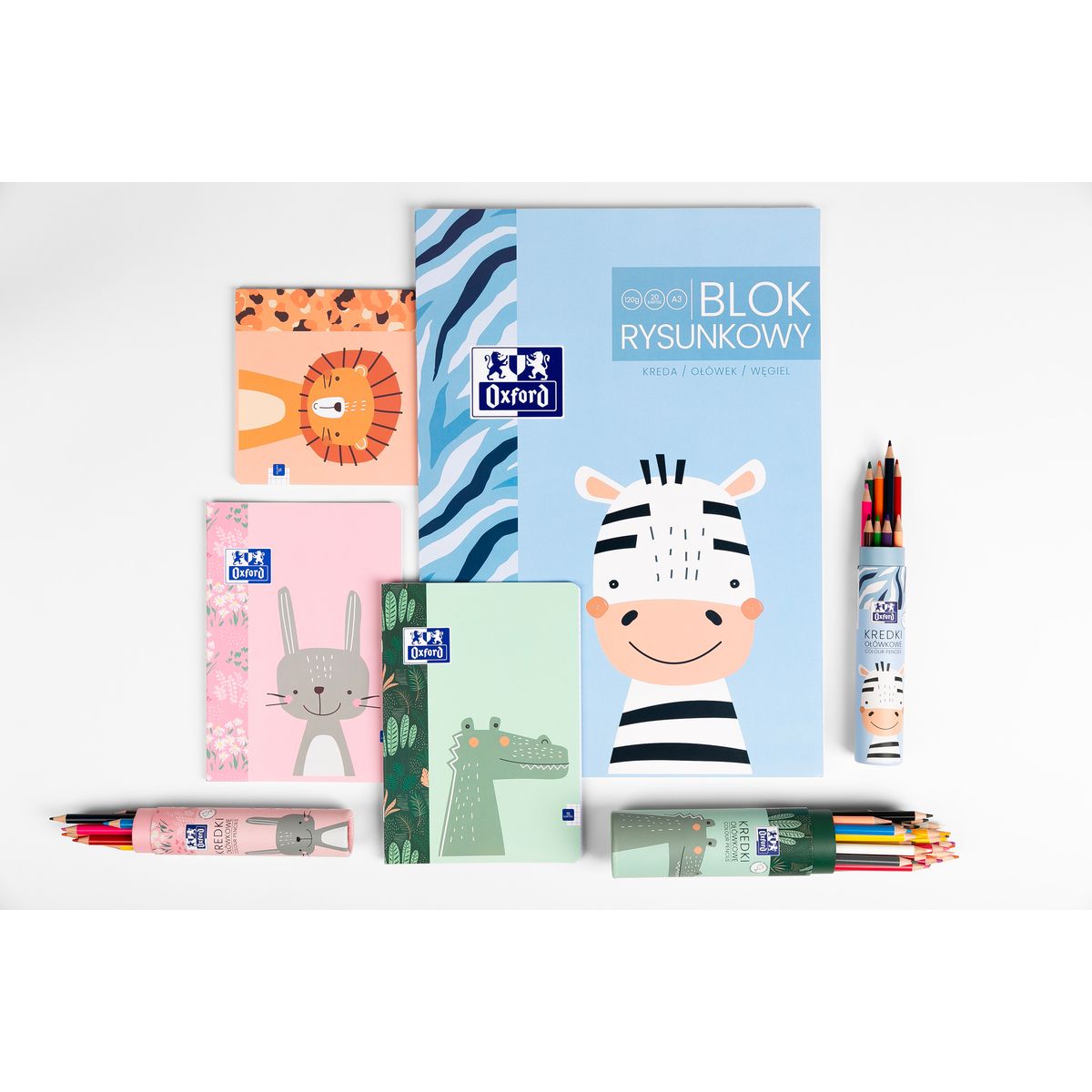Kolekcja zeszytów Oxford Kids w zupełnie nowej odsłonie - połączenie wesołych zwierzaków i prostych, kolorowych wzorów. Poznaj 5 nowych zwierzaków Kids: zebrę, lwa, słonia, królika i krokodyla. Każdy zwierzak ma swój własny kolor i wzór, który pokrywa całą tylną okładkę zeszytu. Dzięki wysokiej jakości Oxford, zeszyty będą towarzyszyły dziecku przez cały rok szkolny, a uśmiechnięte zwierzaki umilą codzienną naukę.