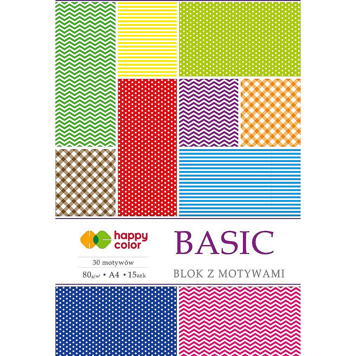 Blok z motywami BASIC, 80g/m2, A4, 15 arkuszy, 30 motywów