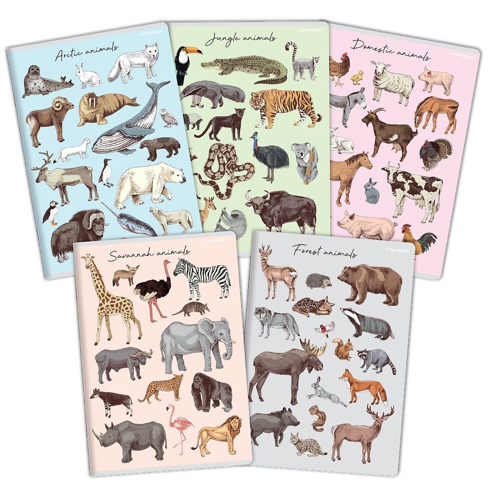 Do wyboru jest 5 wzorów okładek z różnymi grupami zwierzaków i w różnej kolorystyce