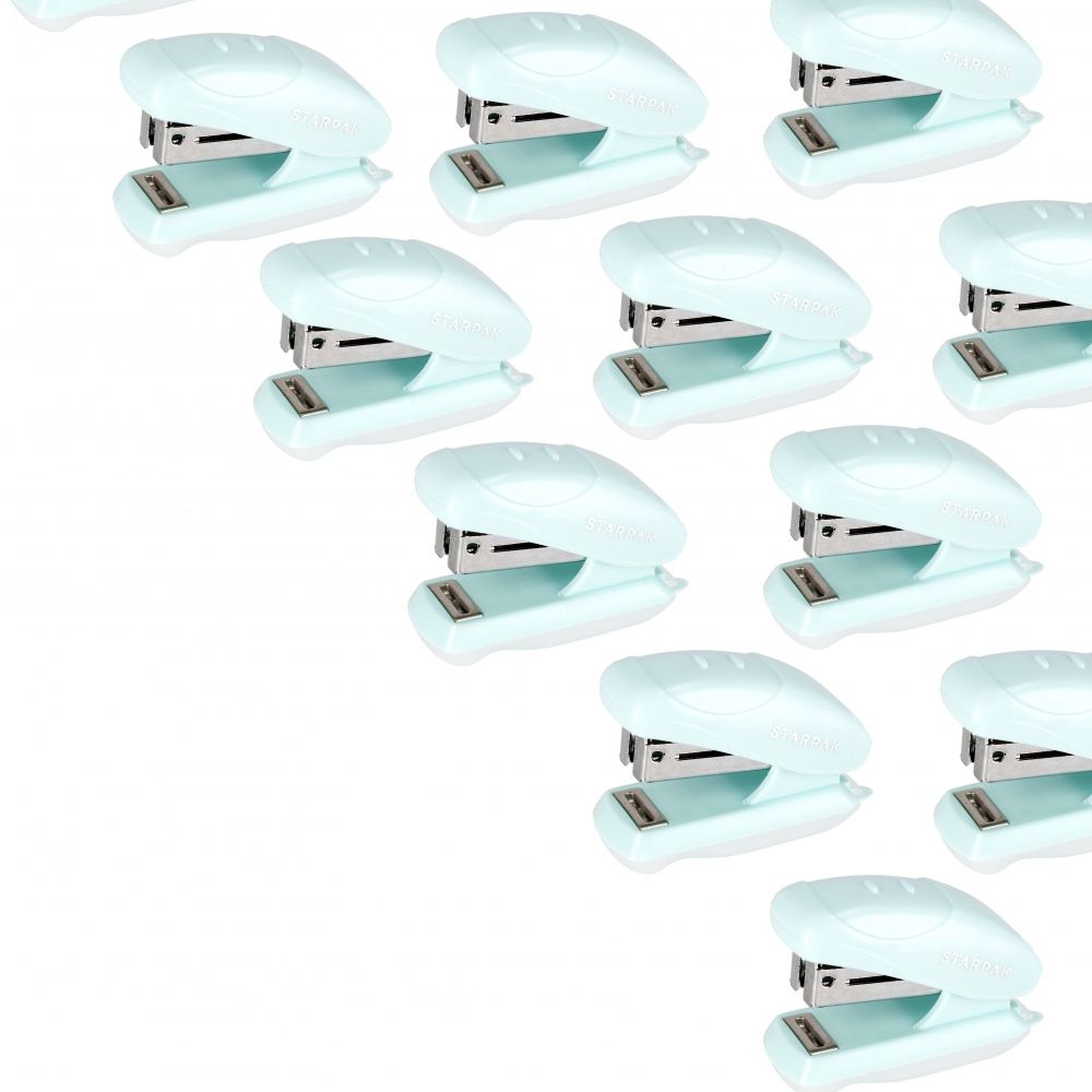 Dostępne: 13 Sztuk Lub zamów telefoniczne: 690 216 578Zalety produktu: Zszywacz mini z kolekcji STARPAK dedykowanej dla szkoły i biura. Zszywacz o nowoczesnym designie. Zszywa jednorazowo do 20 kartek gramatury 80 g/m2. Do zszywacza należy stosować zszywki No. 24/6 - 26/6. Magazynek mieści 40-sztuk zszywek No. 24/6 lub 50 sztuk zszywek 26/6. Głębokość zszywania -25 mm. Zapoznaj się również z innymi produktami Starpak dedykowanymi dla szkoły i biura Pakowany w kartonowe pudełeczko. Wykonany z metalu oraz plastiku. W kolorze pastelowym niebieskim. Wymiary/waga: wymiary produktu dł. x wys. x gł. cm 7x5x3, waga produktu kg. 0,03 kg. Wymiary opakowania dł. x wys. x gł. cm 5x10x3, waga opakowania kg. 0,04 kg. Produkt nieodpowiedni dla dzieci poniżej 3 roku życia. Iner 12 szt. W kartonie po 144 szt.